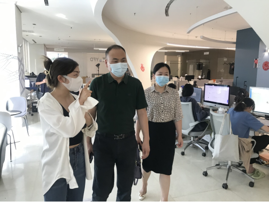 云尚产业发展集团品牌孵化中心联席总经理朱珺、产业推广总监李沛、产业运行经理池婷和湖北凝聚网络科技公司副总裁李文泉、商务部总监占幼军、运营部总监厉攀辉、校企合作部经理张航等企业负责人代表企业热情的接待了我院领导和老师,带领参观了企业办公及实习场地,并对企业文化、工作环境、实习就业岗位、发展前景等基本情况进行介绍。
